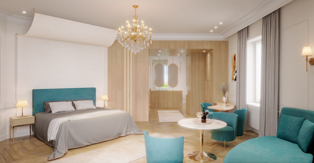 Im oberen Stockwerk befindet sich die großzügige (Hochzeits-)Suite, die am Hochzeitstag für die Vorbereitungen der Braut und ihrer Begleitung genutzt werden kann. Ergänzt wird das Angebot durch vier stilvolle Doppelzimmer sowie eine Master Suite mit gemütlichen Lounge-Bereich für 8 Personen – der ideale Rückzugsort, um entspannt in den nächsten Morgen zu starten.